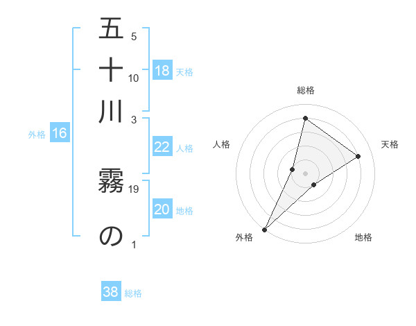 五十川 霧のさんを姓名の画数から五運を鑑定