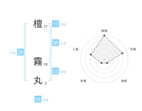 檀 霧丸さんを姓名の画数から五運を鑑定