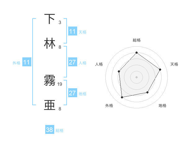 下林 霧亜さんを姓名の画数から五運を鑑定