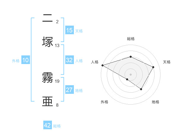 二塚 霧亜さんを姓名の画数から五運を鑑定