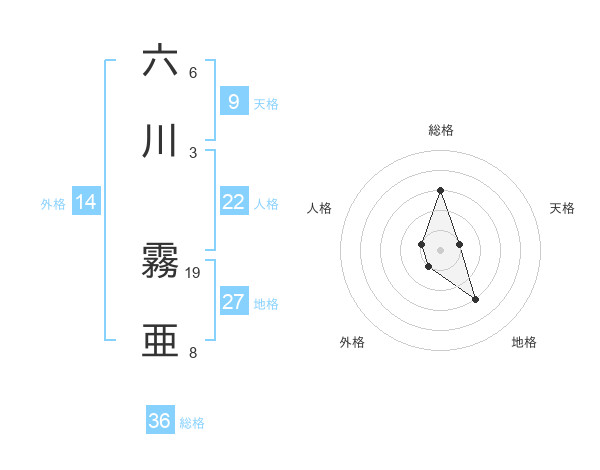 六川 霧亜さんの総格は36画の3点!