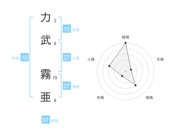 力武 霧亜さんの総格は37画の5点!