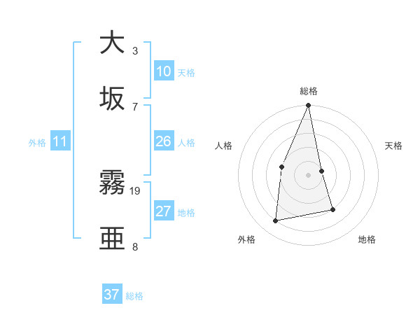 大坂 霧亜さんを姓名の画数から五運を鑑定