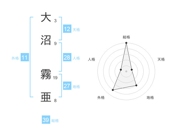 大沼 霧亜さんを姓名の画数から五運を鑑定