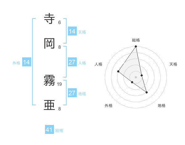 寺岡 霧亜さんを姓名の画数から五運を鑑定