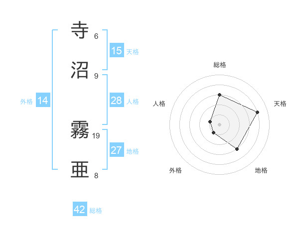 寺沼 霧亜さんの総格は42画の3点!