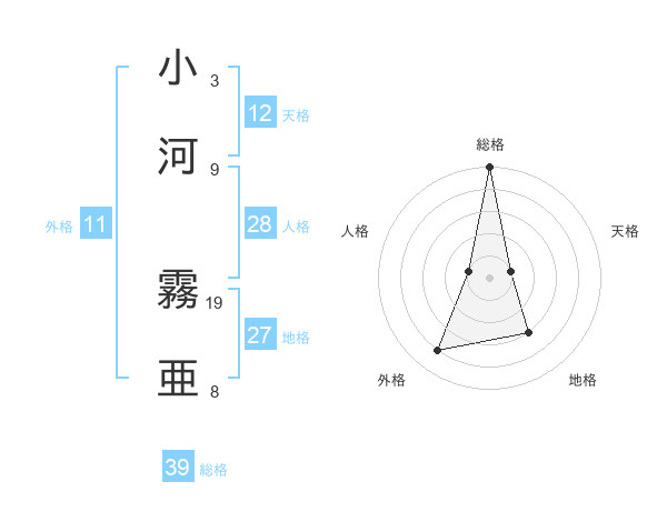 小河 霧亜さんを姓名の画数から五運を鑑定