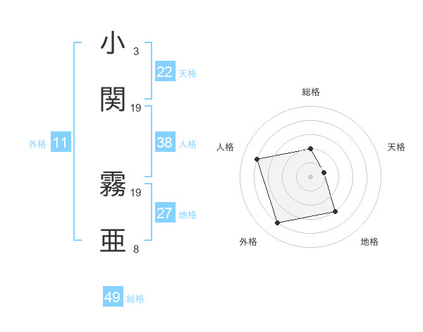 小関 霧亜さんを姓名の画数から五運を鑑定