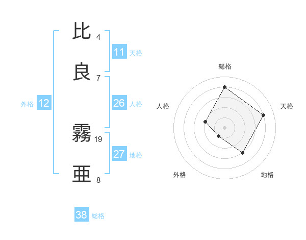 比良 霧亜さんの総格は38画の4点!