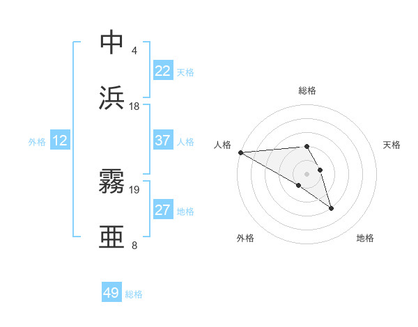 中浜 霧亜さんを姓名の画数から五運を鑑定