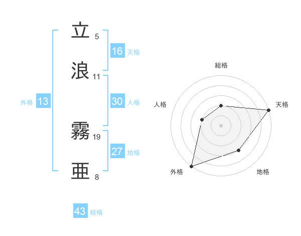 立浪 霧亜さんを姓名の画数から五運を鑑定