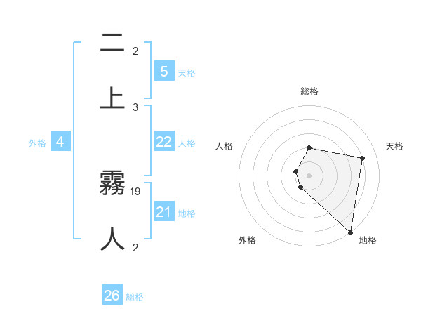 二上 霧人さんの地格は21画の5点!
