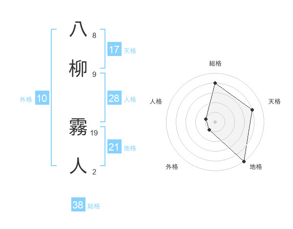 八柳 霧人さんを姓名の画数から五運を鑑定