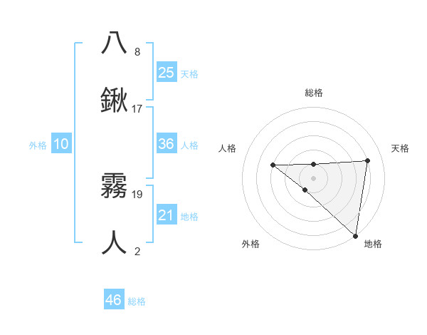 八鍬 霧人さんの総格は46画の1点!