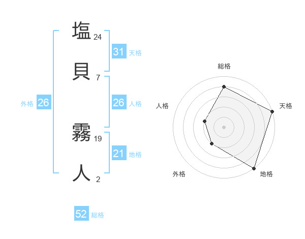 塩貝 霧人さんの総格は52画の4点!