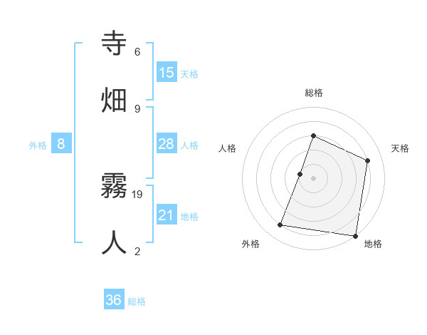 寺畑 霧人さんを姓名の画数から五運を鑑定
