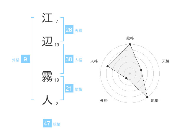 江辺 霧人さんを姓名の画数から五運を鑑定