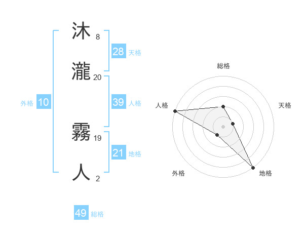 沐瀧 霧人さんを姓名の画数から五運を鑑定