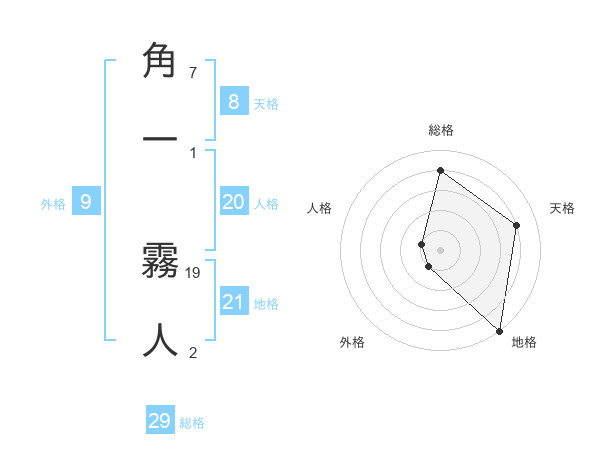 角一 霧人さんの総格は29画の4点!