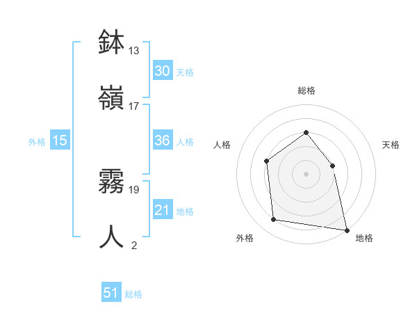 鉢嶺 霧人さんを姓名の画数から五運を鑑定