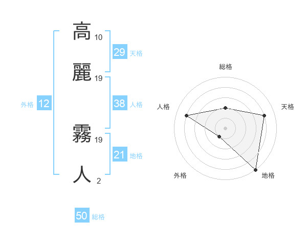 高麗 霧人さんを姓名の画数から五運を鑑定