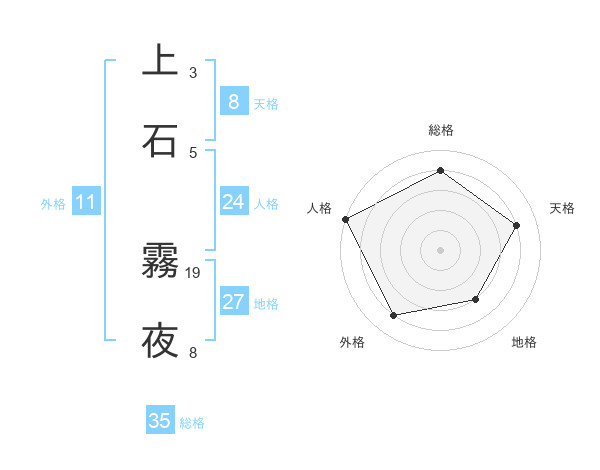 上石 霧夜さんを姓名の画数から五運を鑑定