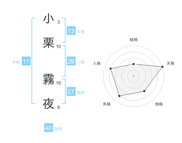 小栗 霧夜さんを姓名の画数から五運を鑑定