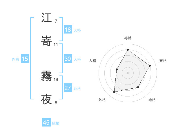 江嵜 霧夜さんの総格は45画の4点!