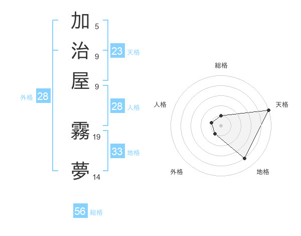 加治屋 霧夢さんを姓名の画数から五運を鑑定
