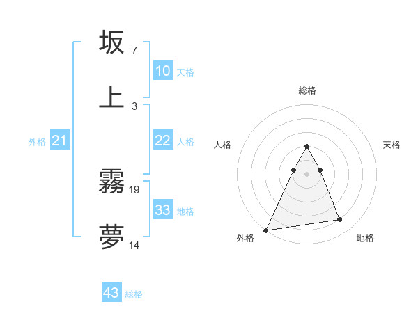 坂上 霧夢さんを姓名の画数から五運を鑑定