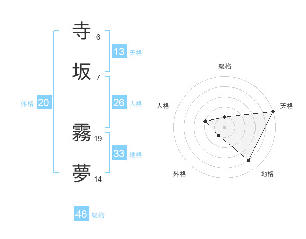 寺坂 霧夢さんを姓名の画数から五運を鑑定