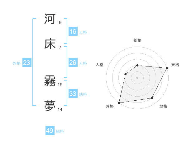 河床 霧夢さんの天格は16画の5点!