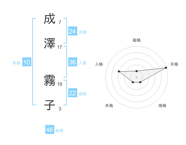成澤 霧子さんを姓名の画数から五運を鑑定