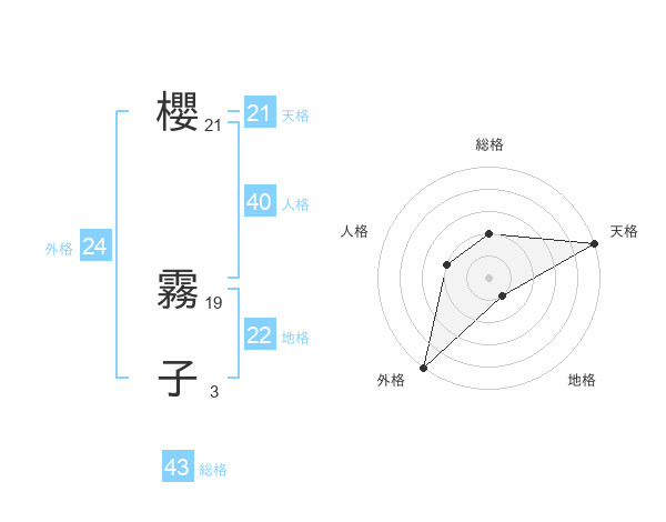 櫻 霧子さんを姓名の画数から五運を鑑定