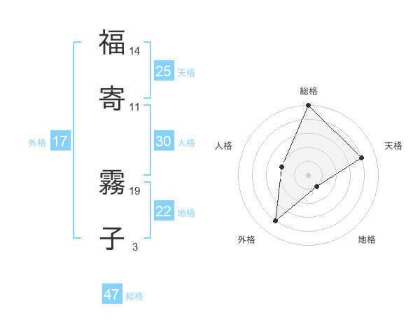 福寄 霧子さんの総格は47画の5点!