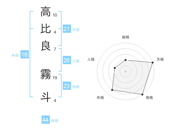 高比良 霧斗さんの総格は44画の2点!