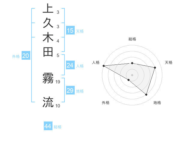 上久木田 霧流さんを姓名の画数から五運を鑑定
