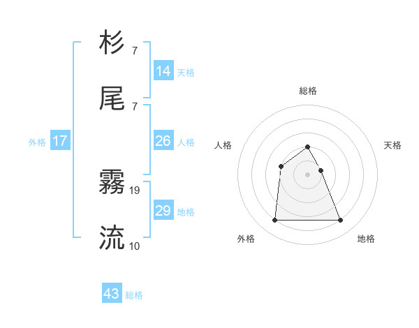 杉尾 霧流さんを姓名の画数から五運を鑑定