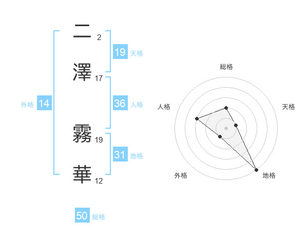 二澤 霧華さんの天格は19画の1点!