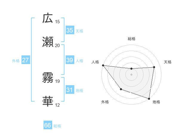 広瀬 霧華さんの総格は66画の1点!