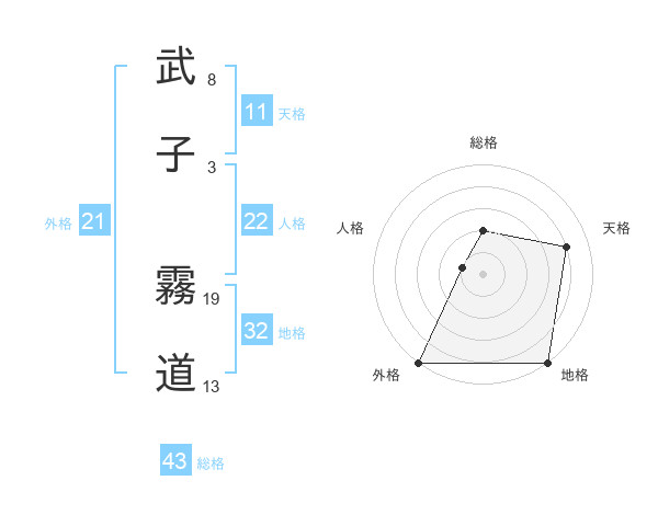 武子 霧道さんの外格は21画の5点!