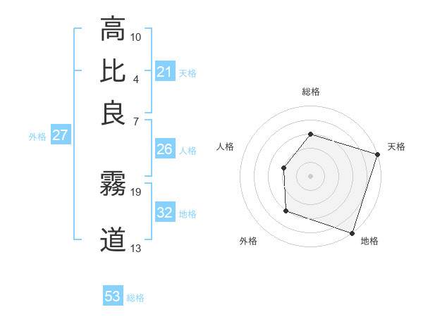 高比良 霧道さんを姓名の画数から五運を鑑定