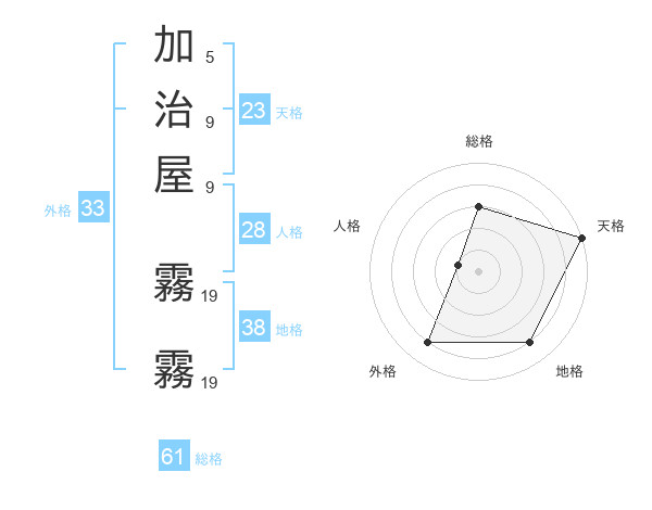 加治屋 霧霧さんを姓名の画数から五運を鑑定