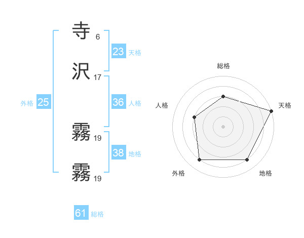 寺沢 霧霧さんの天格は23画の5点!