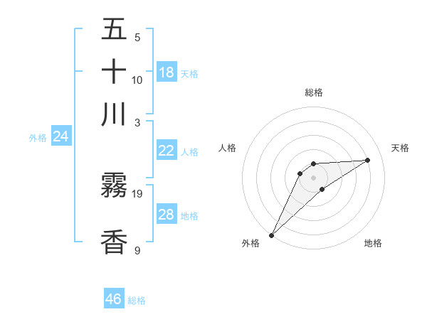 五十川 霧香さんを姓名の画数から五運を鑑定