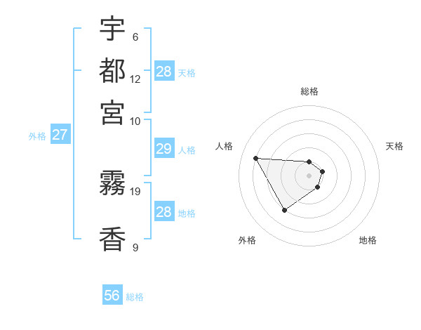 宇都宮 霧香さんを姓名の画数から五運を鑑定