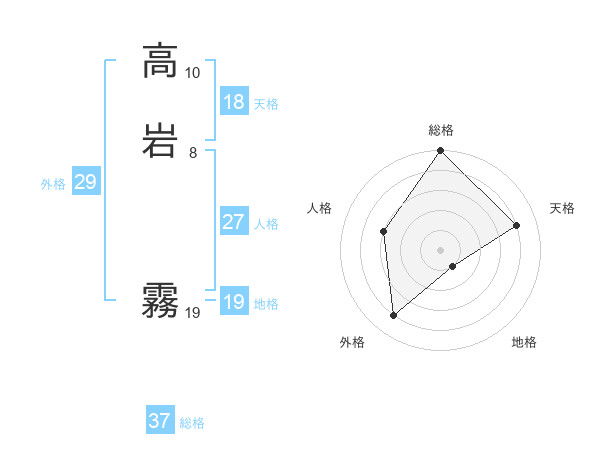 高岩 霧さんの総格は37画の5点!