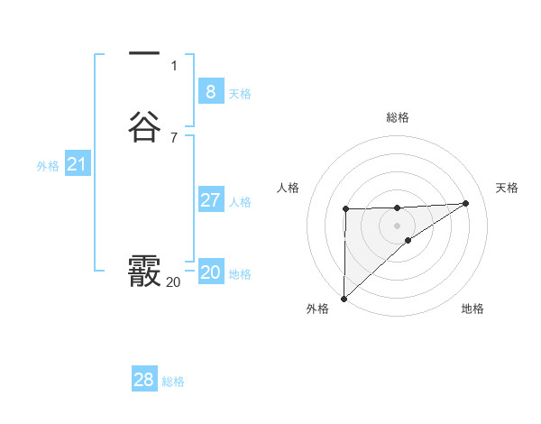 一谷 霰さんの地格は20画の1点!