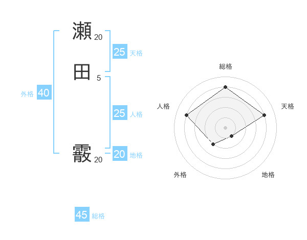瀬田 霰さんの天格は25画の4点!