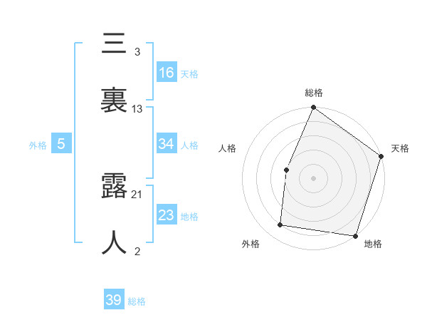 三裏 露人さんの総格は39画の5点!